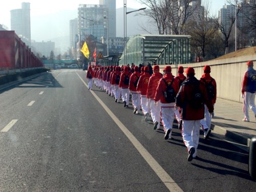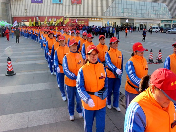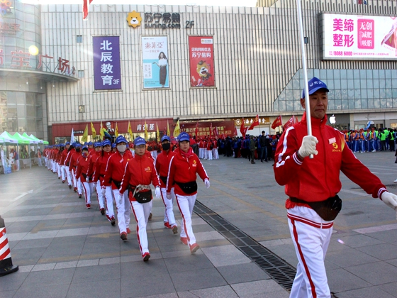 昨天早上8点钟,冬天的阳光已经激情满满的迎接健步走的运动健将了,在连云区嘉瑞宝商业广场处,早已集结了数个健步走俱乐部方阵。8点40分,参与此次活动的千人队伍全部到位整装待发,而另外一边的舞台上更有老年军乐鼓、腰鼓舞等精彩的演出为健将们加油助威。
