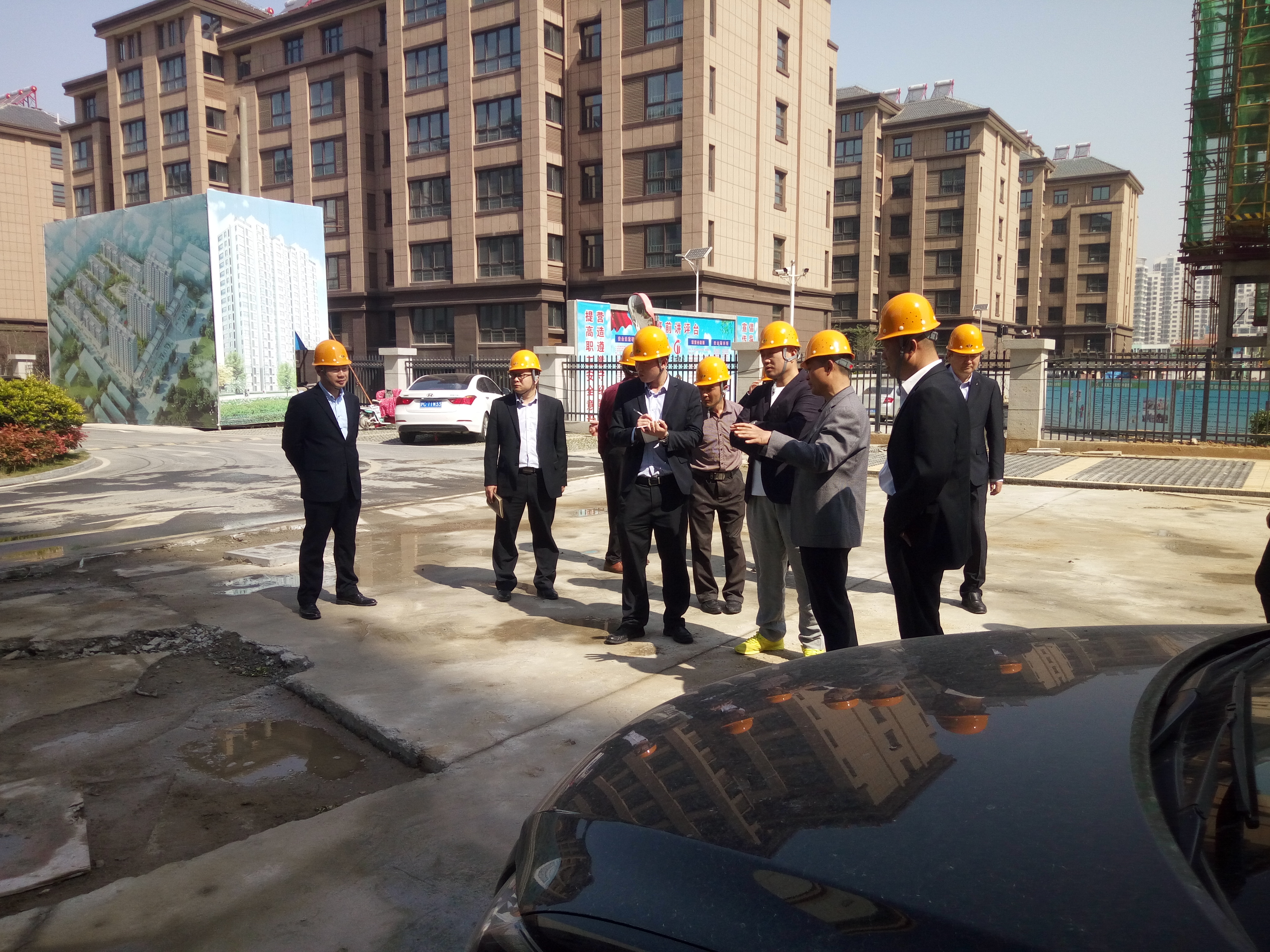 5月10日集团公司董事长徐君带领总经理陈涌、副总经理乔艳丽等人员到赣榆区水岸明珠小区进行调研,针对二期项目考察,关心工程质量问题,提出一些整改要求,对于工程建设一定要按质按量的完成,同时也对一期工程进行核查,关心业主的入住质量。