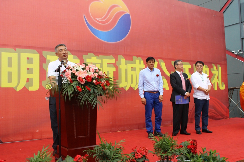 在主持人的邀请下,海岸明珠新城董事长徐君先生登台致辞,徐总向出席盛典的各界嘉宾致以最诚挚的欢迎,感谢大家一起见证这一激动人心的时刻,徐总表示今天海岸明珠新城之所以受到如此多港城市民的关注,一方面源于开发企业的社会责任感以及对精品的追求,另一方面也离不开社会各界的信任与支持。接下来的时间里,海岸明珠新城将再接再励,让港城父老乡亲花更少的钱,住上更符合康居标准的新型住宅,让海岸明珠新城能够在这块热土上开花、结果。紧接着,海州湾小学陈校长更上台致辞对海岸明珠新城捐助学校图书馆事宜表示衷心的感谢。之后,尹汝春先生、邱仁文先生、王兴军先生以及徐君董事长共同开启金球,预祝项目红红火火、兴旺发达。