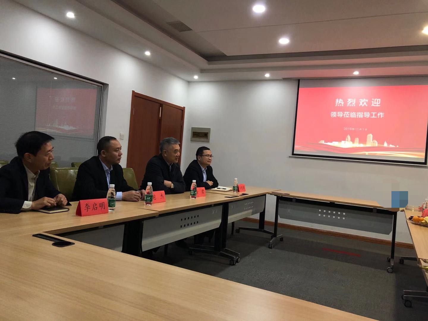 11月1日,市工商联副主席张继武、仇延东,会员部部长王祥、副部长魏引成及工商联会员单位代表来我集团参观、指导工作,集团董事长徐君、执行总经理鲍杰、李启明等参加座谈会。