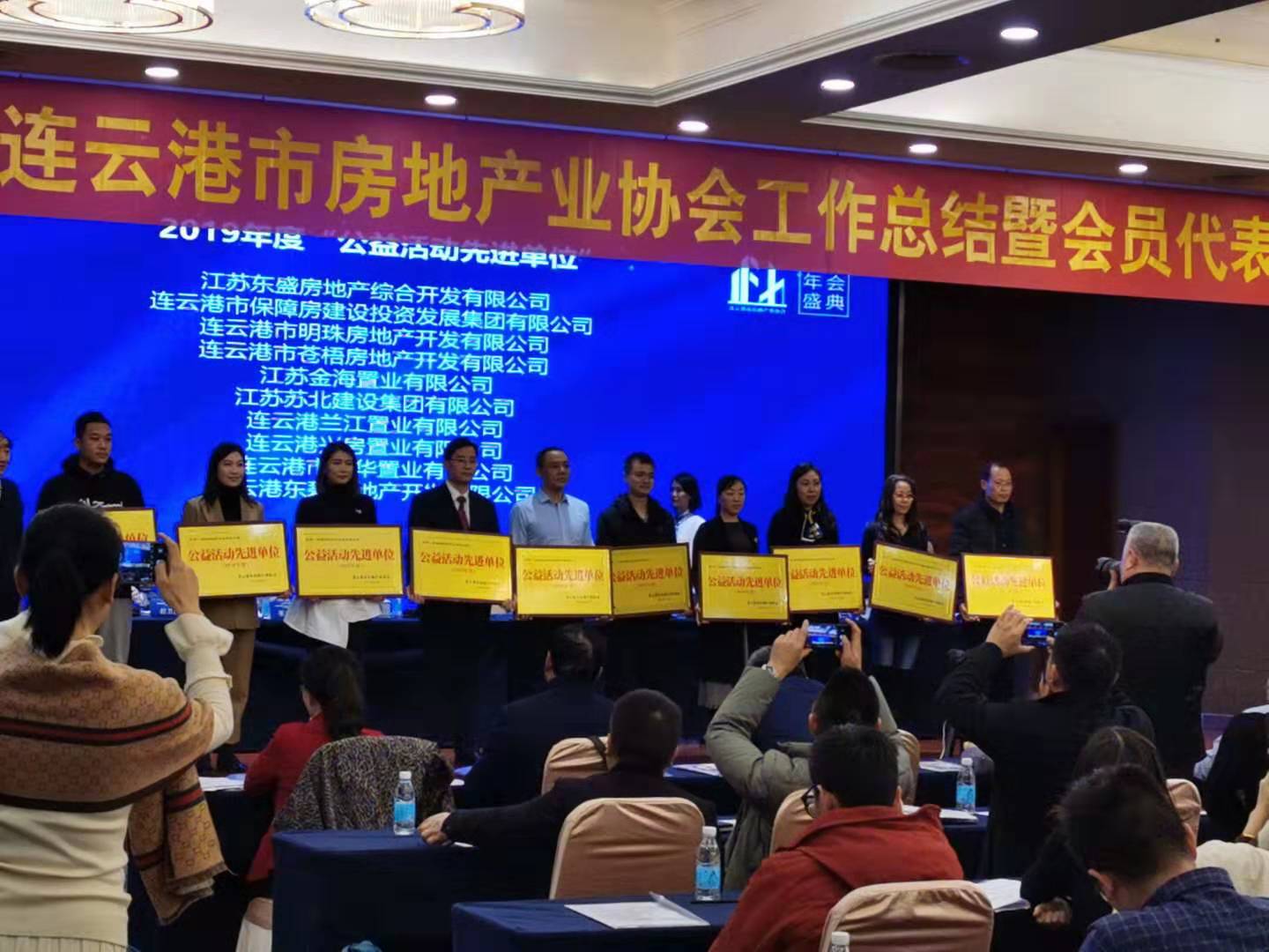 12月26日,江苏苏北建设集团在连云港市房地产业协会工作总结表彰大会上,荣获2019年度公益活动先进单位,旗下连云港金大建设工程有限公司开发建设的海岸明珠新城荣获2019年度十佳营销中心。