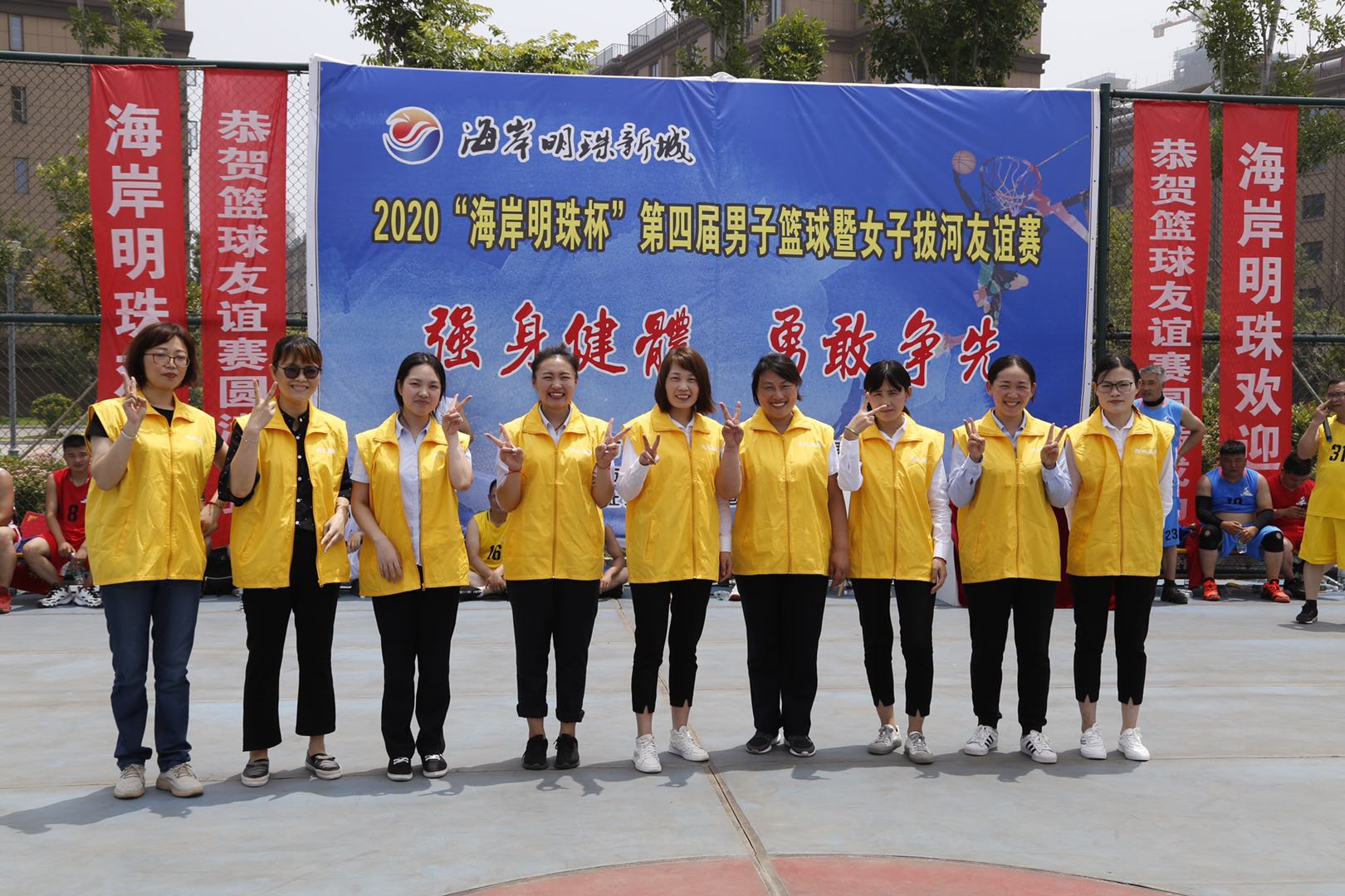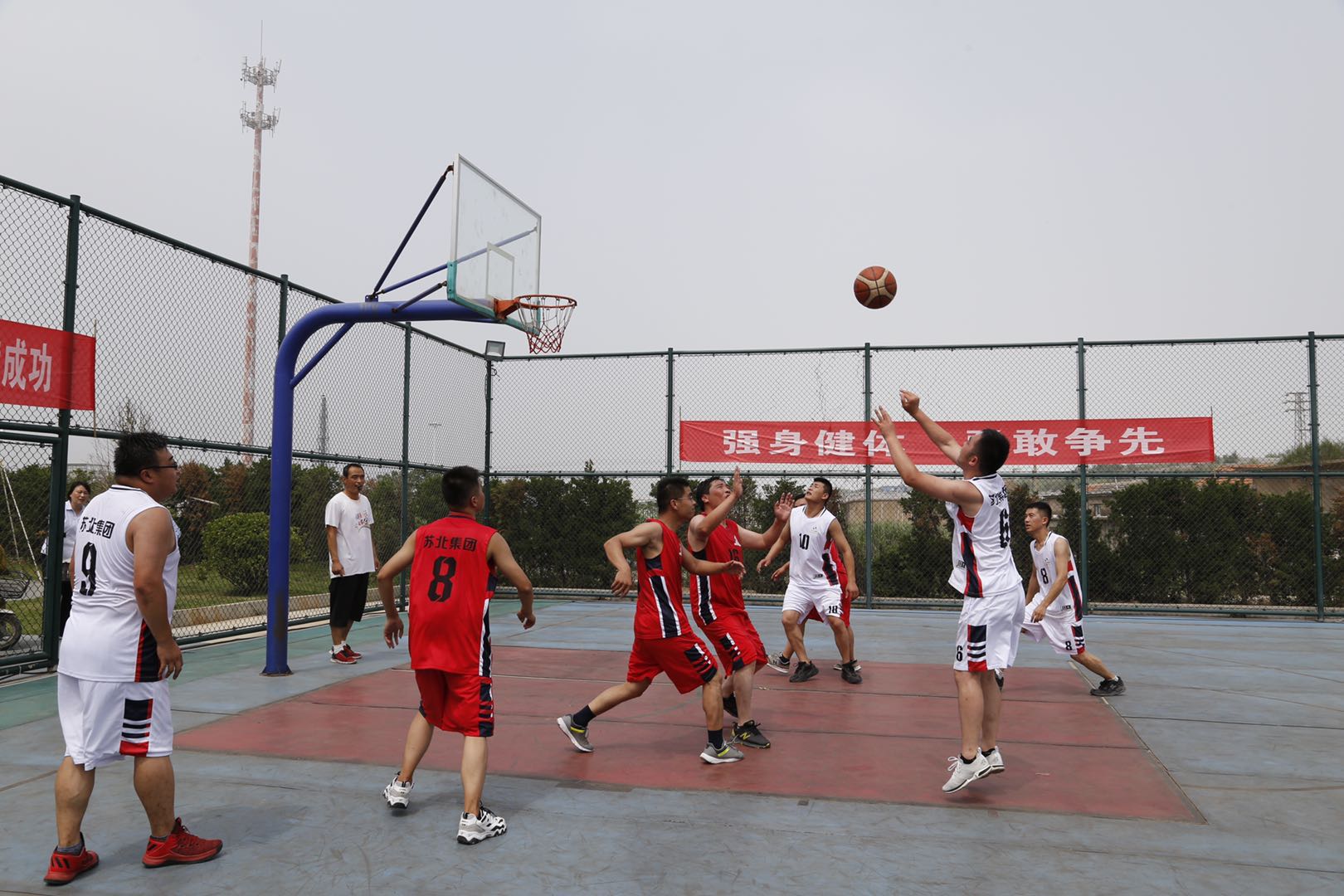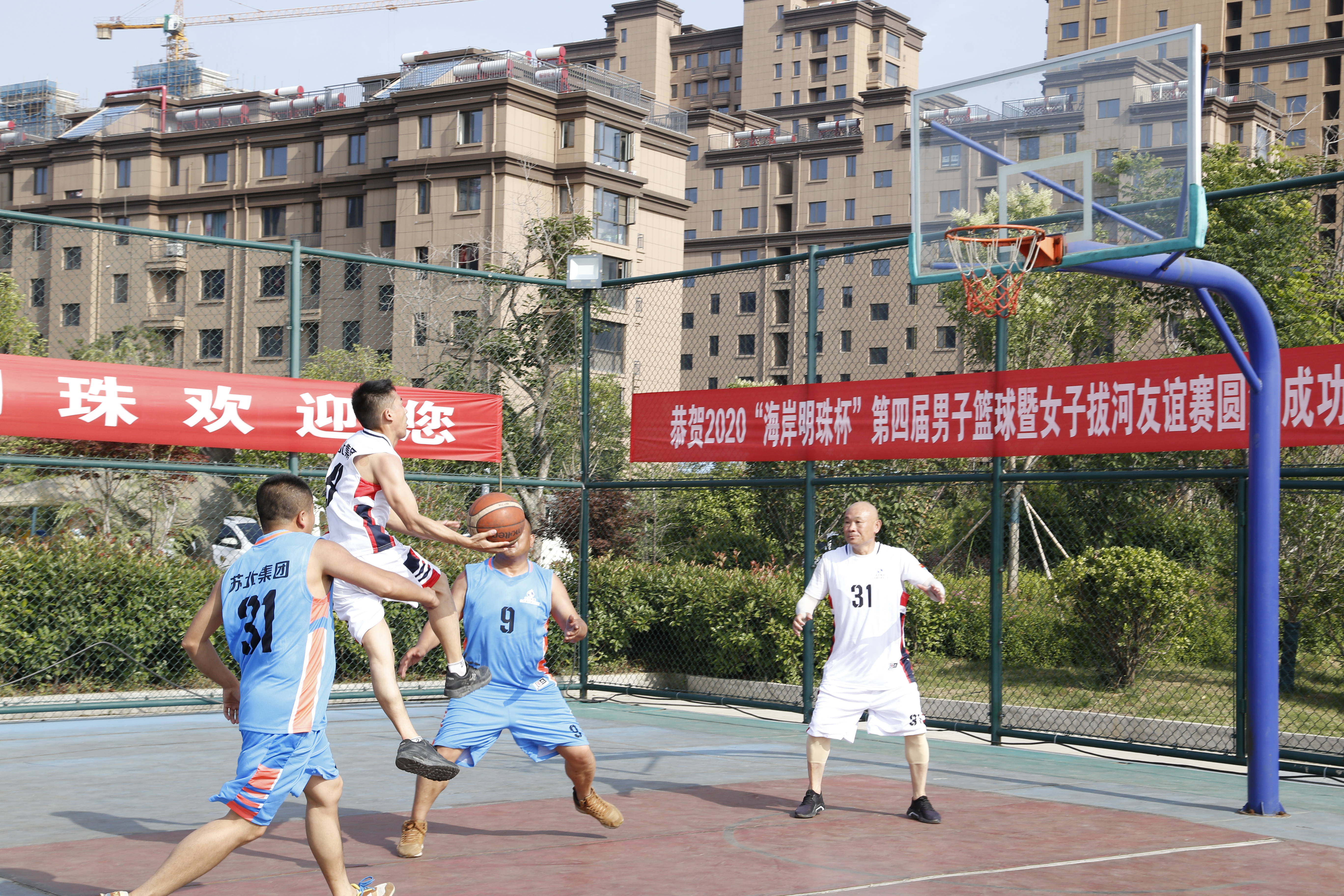 生如夏花之灿烂,在这热情洋溢的季节,上午8点58分,苏北集团迎来了“强身健体、勇敢争先”2020海岸明珠杯第四届男子篮球暨女子拔河友谊赛。本次男子篮球赛共分4支球队,36名运动员参赛,实到32名;女子拔河比赛共分2队,18名女职工参加,实到18名。活动在运动员入场仪式下拉开帷幕,首先苏北集团董事长徐君先生致开幕词,裁判员、运动员代表分别宣誓。本次篮球赛采用淘汰制进行,在篮球赛现场公开抽取对抗双方。