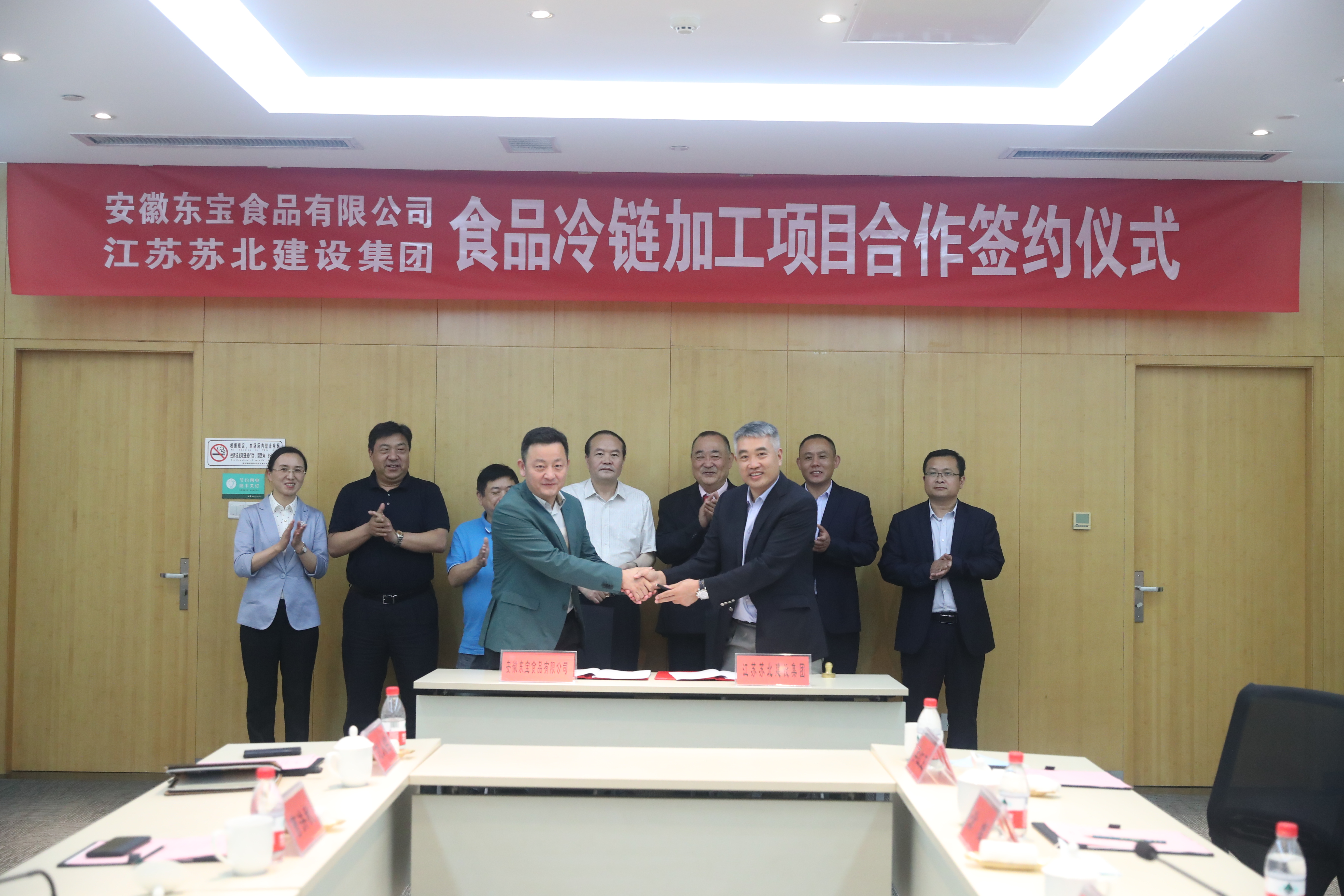 6月18日上午11:58分,苏北集团和安徽东宝食品有限公司(简称东宝食品)成功达成战略合作伙伴,并由我集团江苏基柱建设工程有限公司承建江苏东隆有限公司食品冷链加工项目,合作协议签约仪式在市经济技术开发区管委会三楼会议室举行。连云港市委常委、开发区党工委书记尹哲强、管委会副主任曹洪秋、中云街道党工委书记韩艳,安徽东宝食品有限公司董事长凌东东、副总裁涂斌、韩国宝食品株式会社社长李红卫,苏北集团董事长徐君,执行总经理鲍杰以及相关人员出席。
