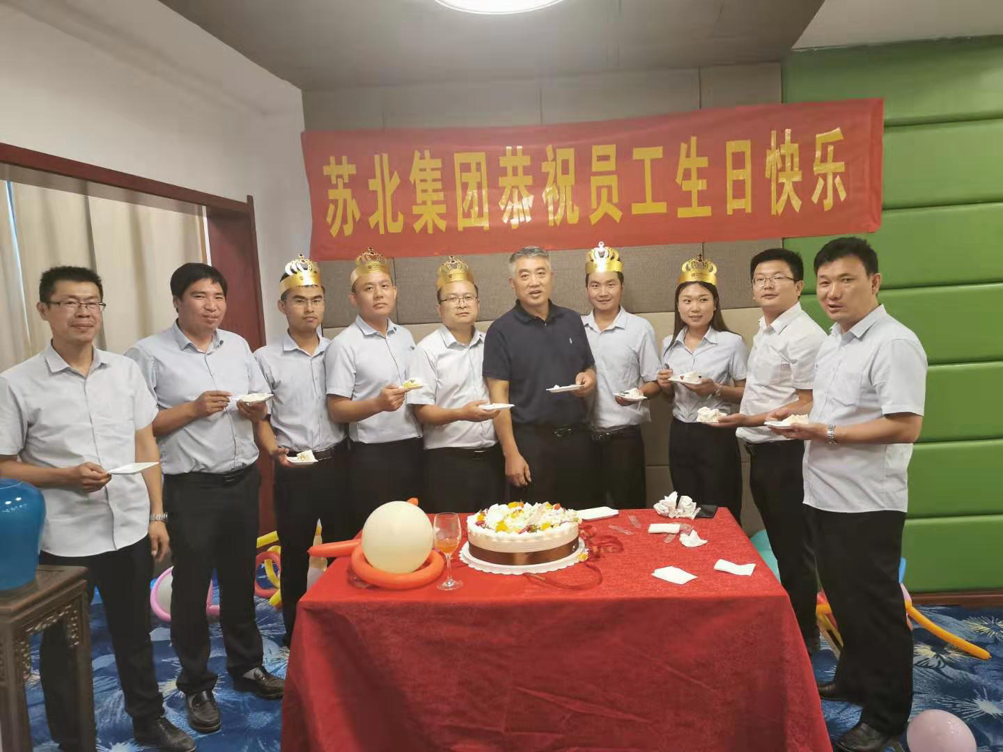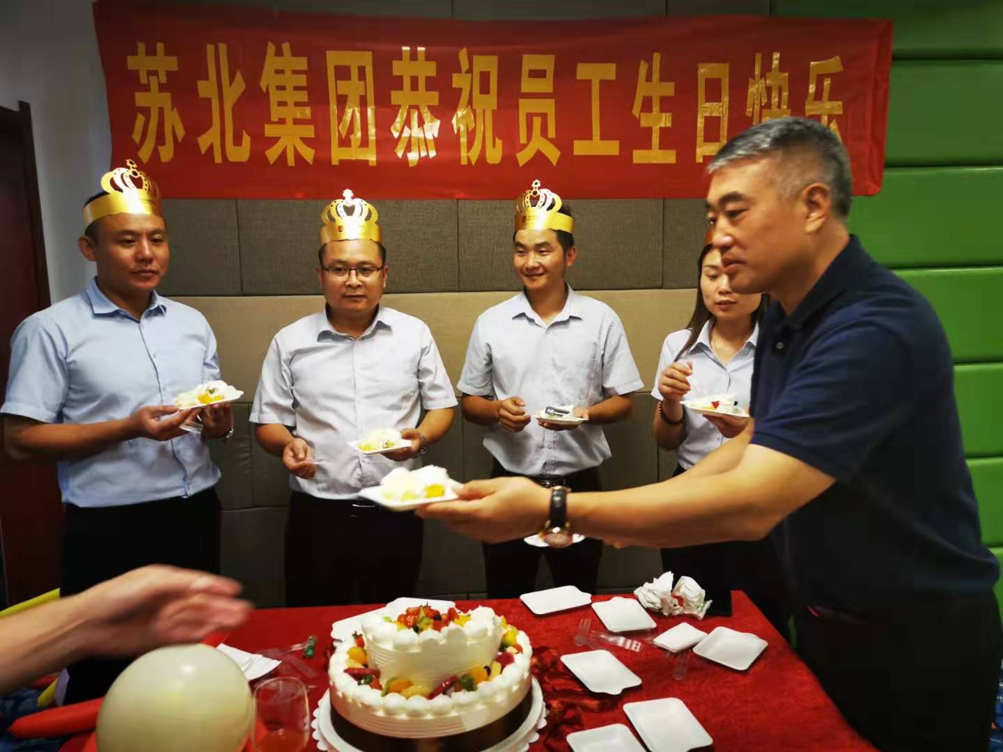 苏北集团一直以来秉承快乐工作理念,以构建和谐企业为目标,致力于打造大家庭般的企业温馨环境,为了让每位员工感受到集体的温暖与关怀,公司每月会为当月生日的员工集体庆生。苏北集团的发展浸透着大伙的汗水!伙伴们手牵手,肩并肩一同融入苏北集团大家庭中共聚愉悦,一同分享惬意的生日会,与公司共同成长和发展,共同谱写苏北集团文化的华丽篇章。