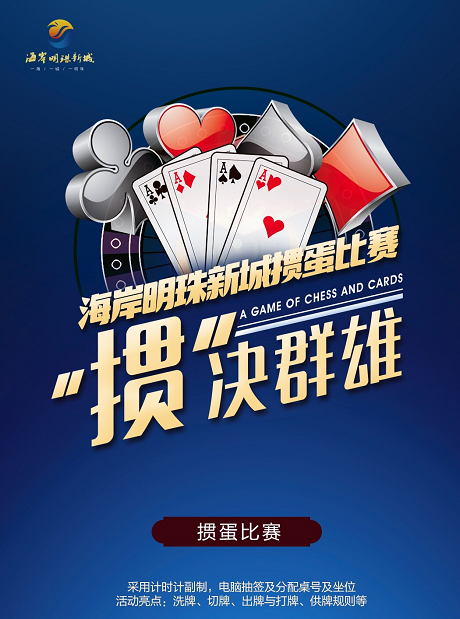 活动预告:本周日3月24日下午掼蛋比赛持续进行,需要报名的客户请提前拨打售楼处电话进行报名。