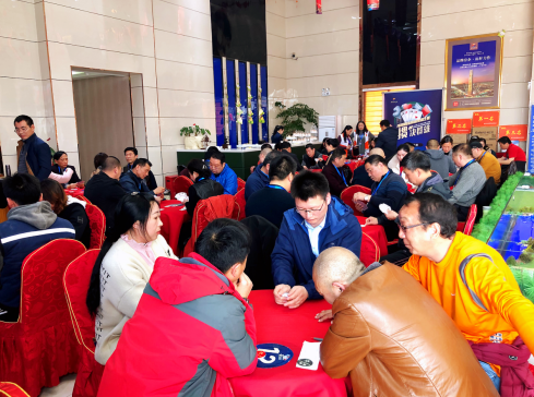 3月17日下午,由海岸明珠新城主办的“掼”决群雄掼蛋赛在海岸明珠新城售楼处展开的激烈的拼杀。