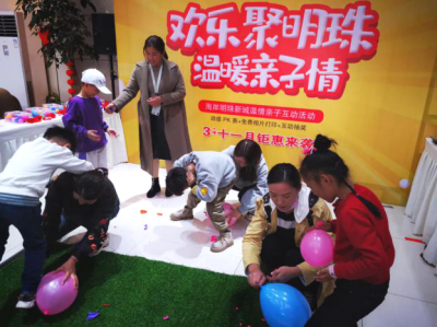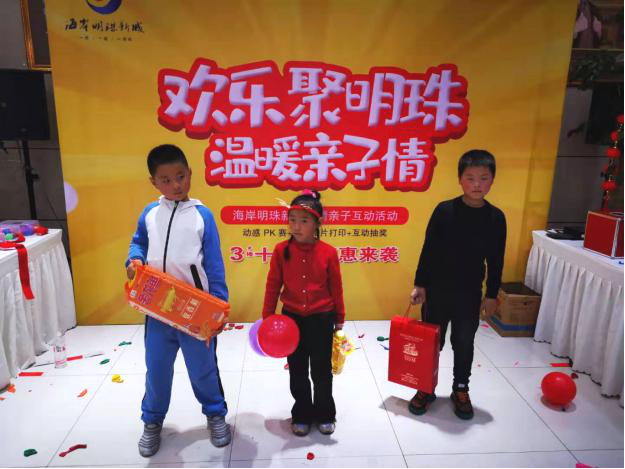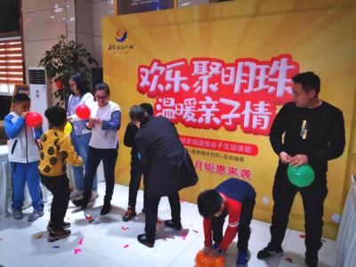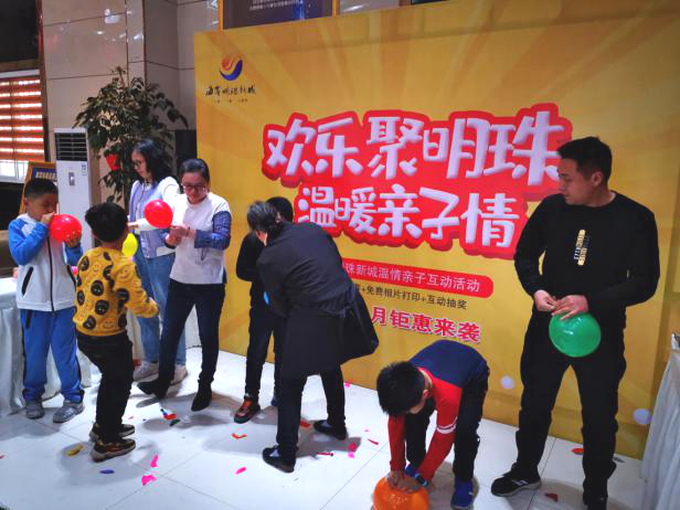 在踩气球PK赛中,大朋友和小朋友们积极踊跃地参与,大朋友负责吹气球,小朋友开心地用脚踩,喜庆之声、欢笑之声弥漫整个售楼处。2分钟内踩了10个气球的家长和小朋友夺得桂冠。
