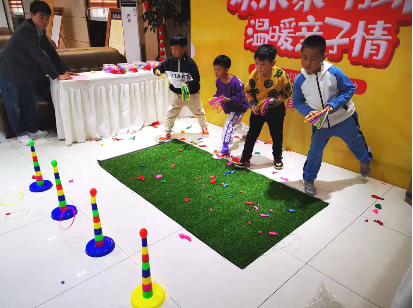 更加有趣的欢乐套套圈环节汇聚大家专注的目光,掌握技巧的小朋友能够套中很多,套中少的也是意犹未尽。经过几轮的PK,孩子们依旧精神十足,享受着竞技带来的快感。