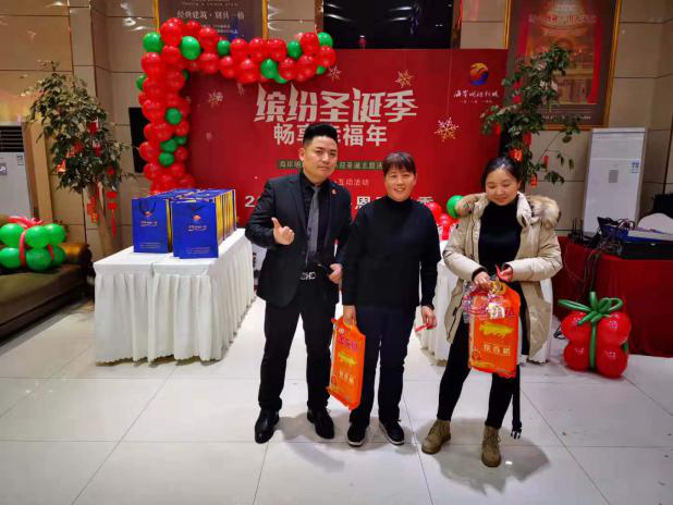 从活动开始,大家都看到台前桌子摆得满满的互动礼物,有成装的冬日暖心圣诞派礼物,诸如手套、围巾、暖手宝等,还有放置精致小礼盒,迎接平安夜的圣诞果、圣诞糖果等,更有“大吉大利”、“恭喜发财”、“吉祥如意”现金红包挂在摇钱树上向大家“招手”,欢迎来摘。这都体现了海岸明珠贴心的服务理念。拿礼物、拆红包就要和主持人互动,大家自然要积极踊跃地举起双手,参与有奖问答、舞蹈模仿秀、趣味走秀等,同时大朋友们纷纷说出自己的圣诞愿望,在海岸明珠送出节日的祝福。