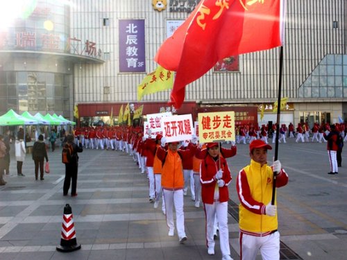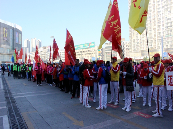 昨天早上8点钟,冬天的阳光已经激情满满的迎接健步走的运动健将了,在连云区嘉瑞宝商业广场处,早已集结了数个健步走俱乐部方阵。8点40分,参与此次活动的千人队伍全部到位整装待发,而另外一边的舞台上更有老年军乐鼓、腰鼓舞等精彩的演出为健将们加油助威。