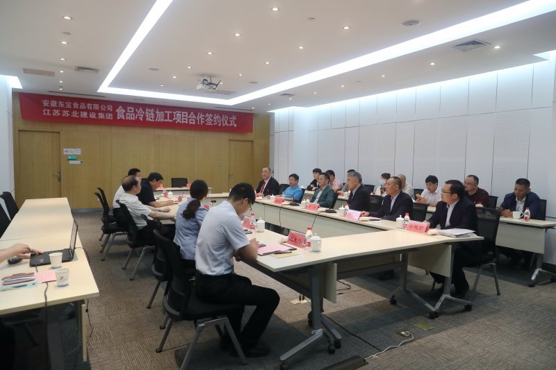 苏北集团徐君董事长和东宝食品凌东东董事长分别代表双方签署了合作协议。