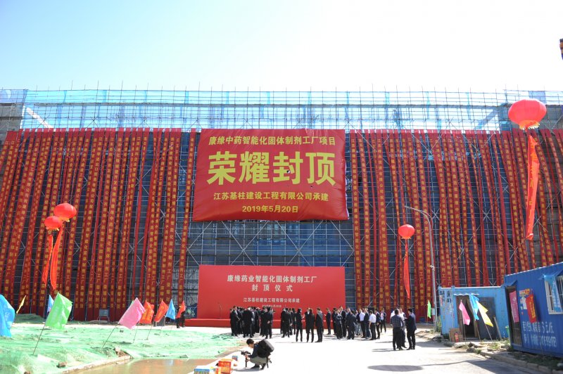5 月 20 日, 苏北建设集团江苏基柱建设工程有限公司承建的 康缘股份智能化固体制剂车间项目 封顶...
